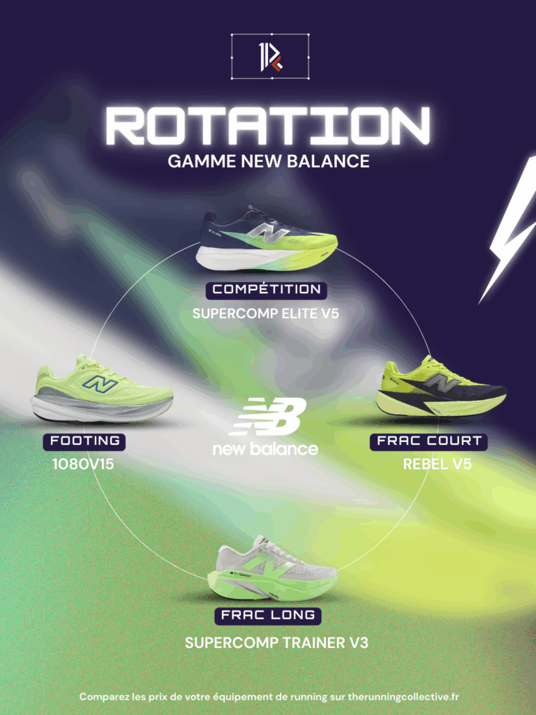 Ce modèle combine le meilleur des deux mondes : mousse FuelCell et plaque carbone pour l’entraînement ! Moins rigide que la Elite V5, la SuperComp Trainer v3 peut s’utiliser plus régulièrement tout en offrant des sensations proches de la compétition. Parfaite pour préparer vos courses importantes ou pour les entraînements spécifiques, elle représente un excellent investissement. Ce modèle est idéal pour les fractionnés longs et même pour les compétitions allant du 5km au marathon.