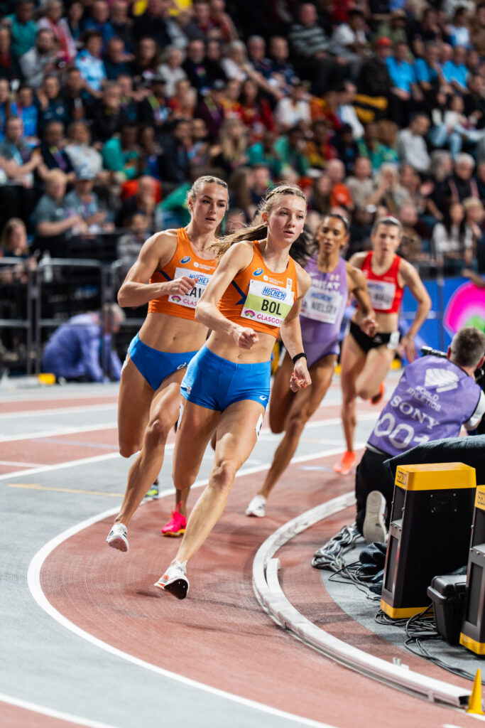 Pour son tout premier 800 mètres en compétition indoor, Femke Bol a remporté la course en 1’59″07, passant sous la barre symbolique des deux minutes dès sa première tentative et établissant un nouveau record national néerlandais. Habituée à dominer le 400 m haies, la double championne du monde a géré son effort avec prudence au passage des 400 m (57 secondes), avant d’accélérer dans le dernier tour. Les Suissesses Valentina Rosamilia (1’59″90) et Lore Hoffman (1’59″91) ont complété le podium, mais l’écart était déjà creusé.