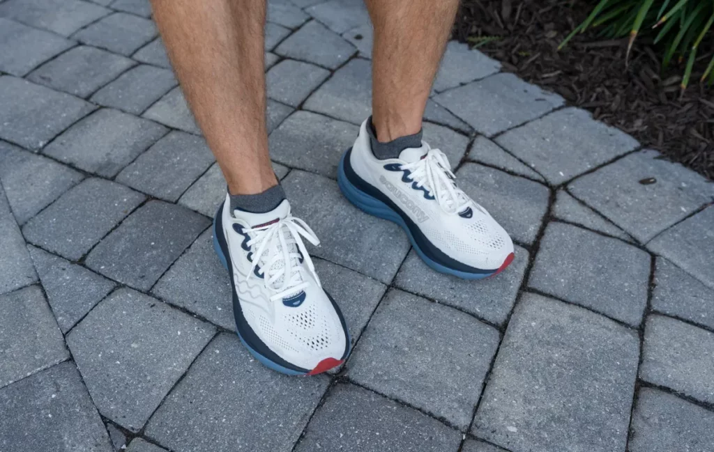 Saucony a entièrement repensé la tige avec un mesh plus respirant et un ajustement affiné. L’empeigne épouse mieux la forme du pied, réduisant les points de pression au niveau du médio-pied et du talon.