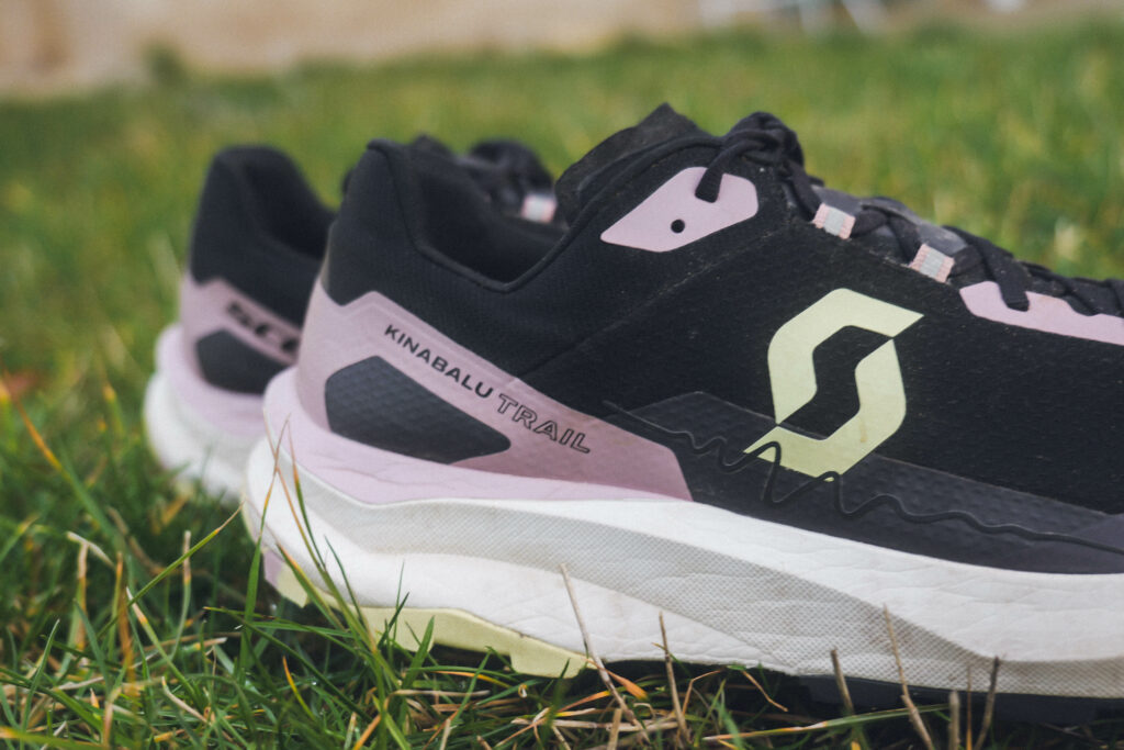 La semelle intermédiaire utilise la technologie Kinetic Fusion Foam de Scott, une mousse développée pour offrir un amorti réactif et dynamique. Avec une hauteur de stack relativement modeste (33 mm au talon, 27 mm à l’avant-pied), la Kinabalu Trail privilégie la proximité avec le terrain tout en conservant suffisamment d’amorti pour les longues distances.